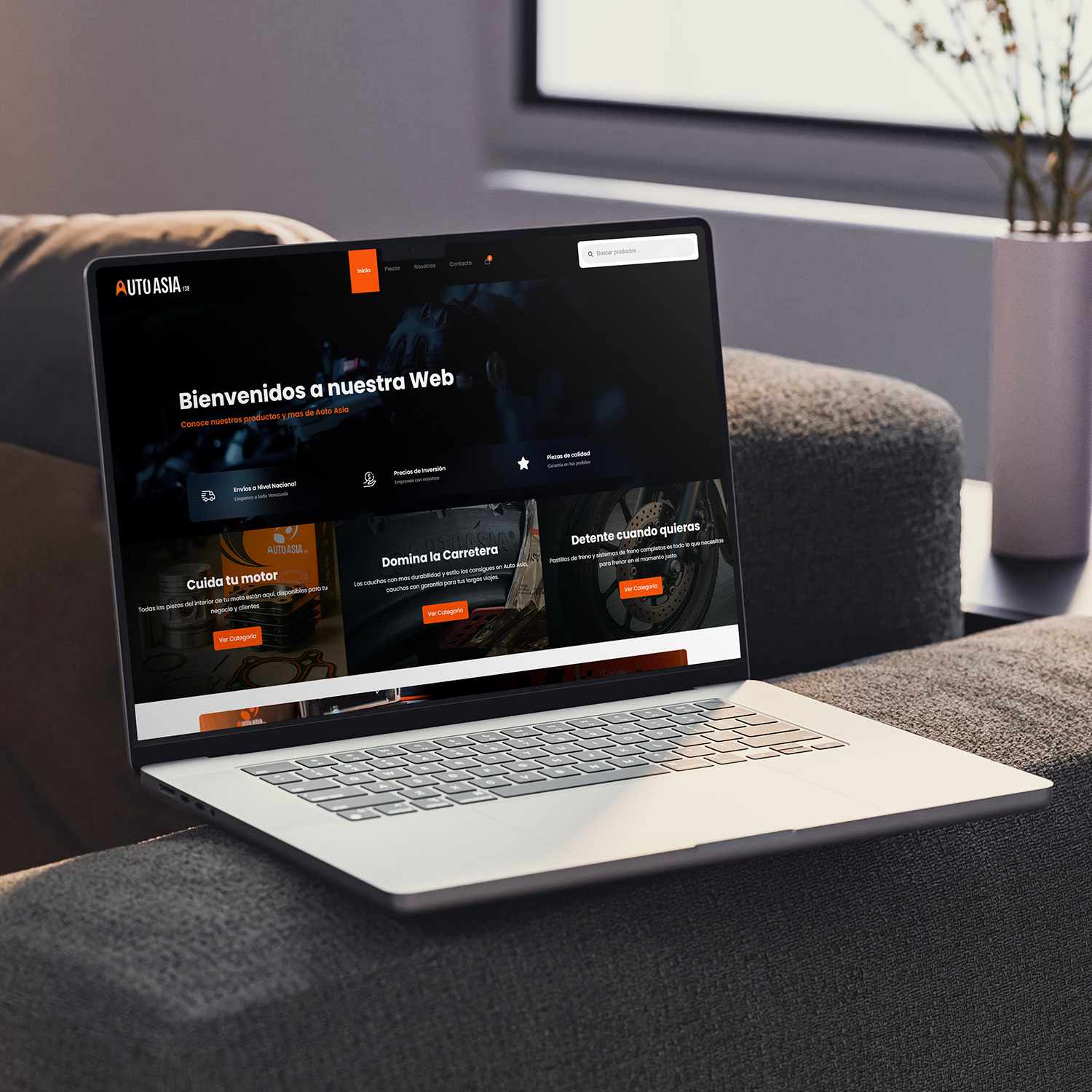 El diseño se desarrolló manteniendo una estética moderna y profesional, con una paleta de colores neutros y detalles metálicos que refuerzan la identidad automotriz de Auto Asia.