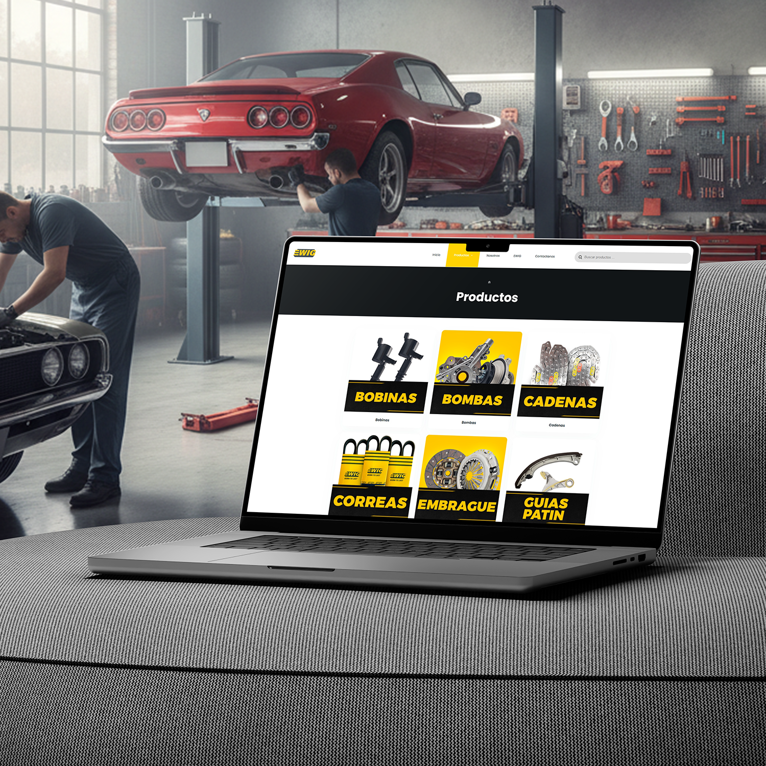 EWIG solicita una web que encaje perfectamente con la identidad de la marca, resaltando su identidad con el mundo automotriz. Reforzando siempre que su mayor ventaja es la calidad y duración de sus piezas. Queriendo demostrar que son la marca en la que puedes confiar, garantizando que tu auto estará con repuestos de primera.